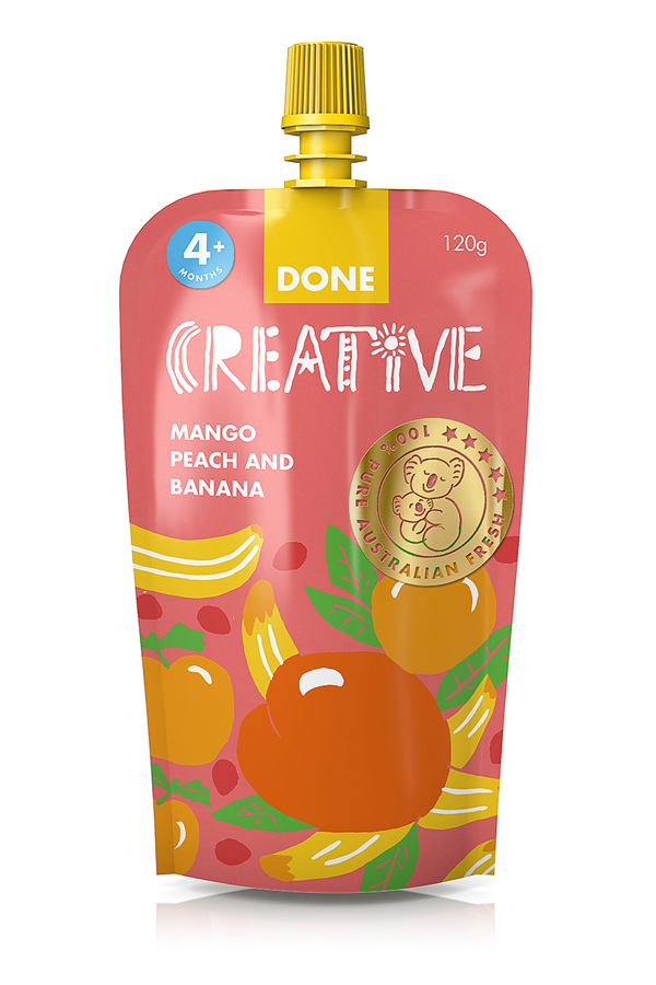 CREATIVE’s mango, peach & banana puree is the perfect choice when your baby is ready to start on solids. Our first stage purees are silky smooth and easy to digest, in subtle fresh fruit and vegetable flavours. Perfect for on-the-go in a convenient squeezable pouch, our variety of delicious flavor combinations provide your infant with new experiences in taste and texture, with no artificial flavours, colours or preservatives.